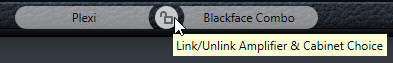 Чтобы зафиксировать/связать комбинацию усилителя и кабинета, включите кнопку Link/Unlink Amplifier & Cabinet Choice (Связать/разорвать усилитель и кабинет). Если сейчас выбрать другую модель усилителя, этому выбору будет также следовать выбор кабинета. Однако, если выбрать другую модель кабинета, эта связка будет деактивирована.