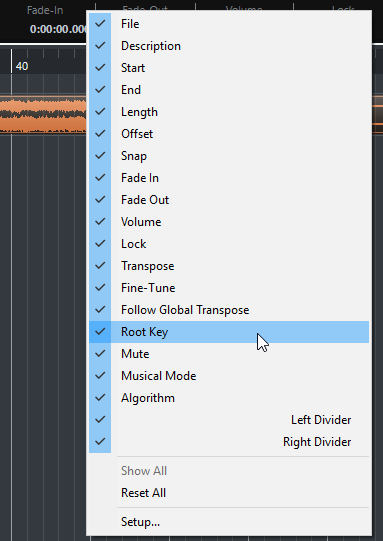 Des menus contextuels de configuration sont disponibles dans la palette Transport, dans les barres d’outils, dans les lignes d’infos et dans l’Inspecteur.