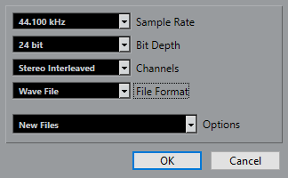 設定した属性に応じた新規コピーを作成し、プールにある元のファイルはこの新規ファイルに置き換えられ、現在のクリップ参照を元のファイルから新規ファイルに変更します。オーディオクリップが変換後のファイルを参照するようにして、しかも元のファイルはディスクに残したい場合にはこのオプションを選択します (たとえば、ファイルを他のプロジェクトで使用する場合など)。