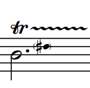Indicates the trill interval using accidentals positioned above, below, or beside the tr mark. This is the default trill interval appearance in Dorico Pro for major or minor second trills.