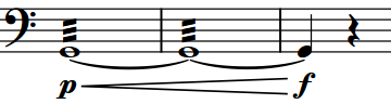 Tremolos with release show single-note tremolo strokes on all notes in tie chains apart from the last note. Tremolos with attack show single-note tremolo strokes on all notes in tie chains apart from the first note.