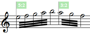 When tuplets are selected, multi-note tremolos are input across the selected tuplets, with the tremolo strokes positioned in the center of all notes in the tuplet. The tuplet bracket is hidden, and a signpost is shown at the start of each tuplet indicating its ratio.