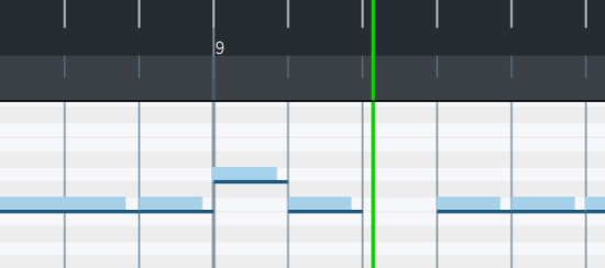 The playhead is a vertical line that moves during playback, showing the current rhythmic position. It is also known as a “playback line”.
