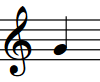 図: ト音記号で表示するミドル C の下の E |
