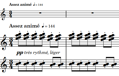 図: フランス語によるテキスト指示とメトロノームマークからなるテンポ記号