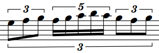 Nested tuplets are tuplets within larger tuplets that are often used to create complex rhythms. In Dorico Pro, there is no limit to the number of levels you can have in nested tuplets.