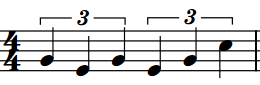 Figure: Mesure en 4/4 avec une sous-division de six noires en triolets réparties sur la durée de quatre noires normales |