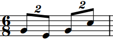 Figure: Mesure en 6/8 avec une sous-division de quatre croches en duolets réparties sur la durée de six croches normales |