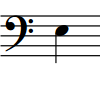 Figura: Il Mi sotto il Do centrale visualizzato in una chiave di basso |