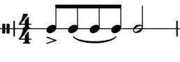 Nei righi a cinque linee per le percussioni non intonate, le diverse posizioni sul rigo corrispondono a diversi strumenti percussivi.