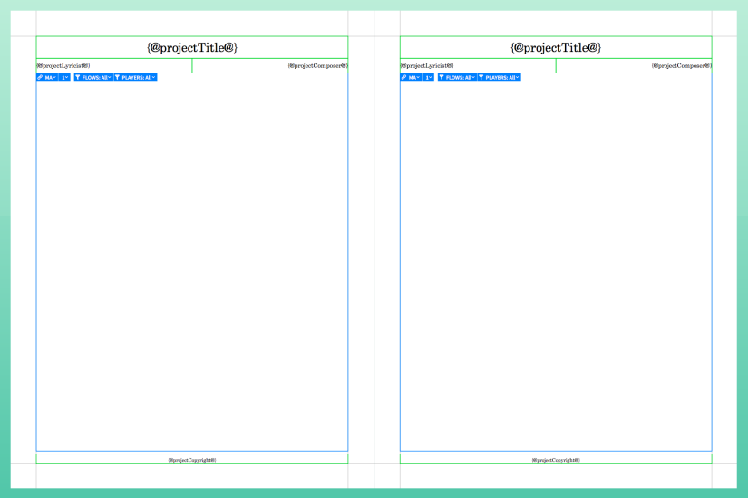 テキストフレーム内のトークンと楽曲フレーム内の楽譜は、各レイアウトに適した形で自動的に更新されます。ただし、グラフィックフレームはすべてのレイアウトに単一のイメージを表示します。1 つのレイアウトでグラフィックフレーム内のイメージを変更すると、マスターページが更新され、すべてのレイアウトに変更が反映されます。