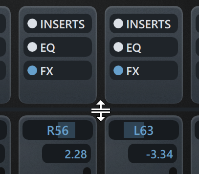 Dans la Console de mixage, cliquez sur la ligne qui sépare les tranches de canaux et les canaux, et faites-la glisser vers le haut/bas.