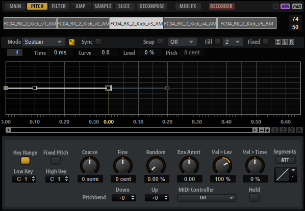 Auf der Pitch-Registerkarte können Sie die Tonhöhen-Hüllkurve einrichten.