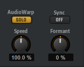 Der Solo-Modus enthält Parameter für Time-Stretching und Formant-Shifting. Dieser Modus eignet sich besonders für Loops und Samples mit Solo-Instrumenten oder Stimmaufnahmen.