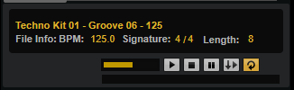 Mit den Bedienelementen unter der Trefferliste können Sie MIDI-Pattern und Styles aus der Trefferliste vorhören, bevor Sie sie laden.