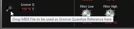 Der Parameter Groove Quantize Depth rechts neben dem Feld bestimmt, wie genau das Pattern dem Timing der MIDI-Datei folgt.