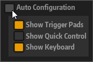 Wenn Auto Configuration deaktiviert ist, können Sie bestimmen, ob die Trigger-Pads, Quick Controls und der Keyboard-Bereich zur Player-Ansicht hinzugefügt werden sollen.