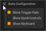 Quand Auto Configuration est désactivé, vous pouvez choisir d'ajouter les sections des pads de déclenchement, des contrôles instantanés et du clavier à la vue de jeu.