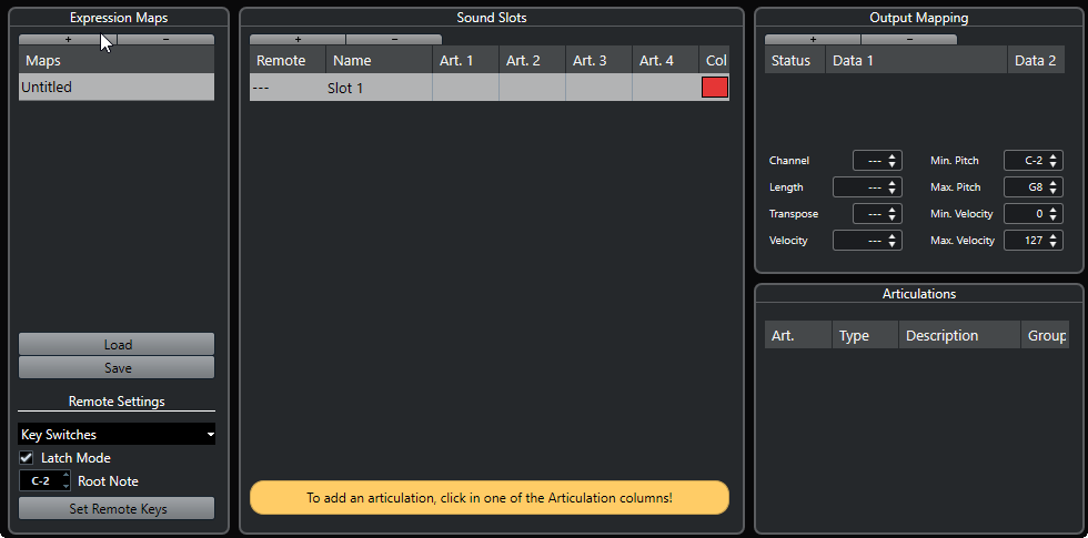 - В Инспекторе MIDI или инструментального трека откройте секцию Карта экспрессии.
