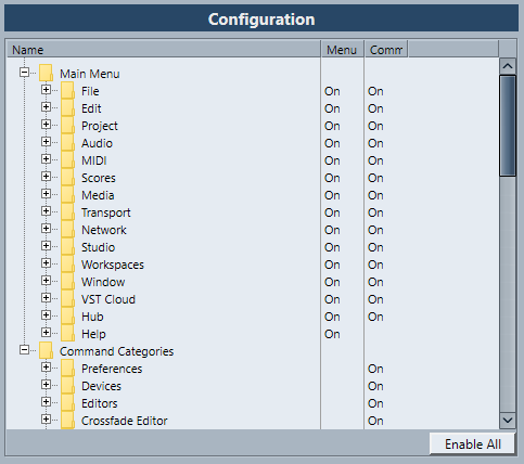 Any key command assigned to that menu item or function is now disabled.