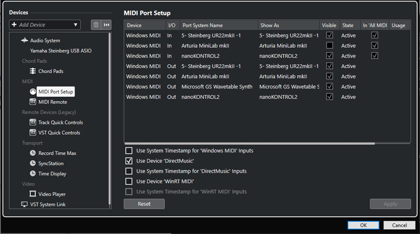- "DirectMusic" 入力にシステムのタイムスタンプを使用 (Use System Timestamp for 'DirectMusic' Inputs)