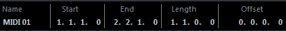 Die Infozeile zeigt Informationen über das Event oder den Part an, das/den Sie in der Projekt-Zone ausgewählt haben.