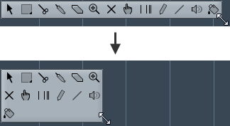 La casella degli strumenti rende disponibili gli strumenti di lavoro (detti anche tools) presenti nella barra degli strumenti alla posizione del puntatore del mouse. Essa può essere aperta al posto dei menu contestuali standard all’interno del riquadro di visualizzazione degli eventi e negli editor.