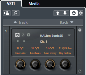 プロジェクトウィンドウの右ゾーンに「VSTi」ラックを表示できます。これにより、VST インストゥルメントの追加や編集を行なう際に、トラックとイベントのコンテキストを確認できます。