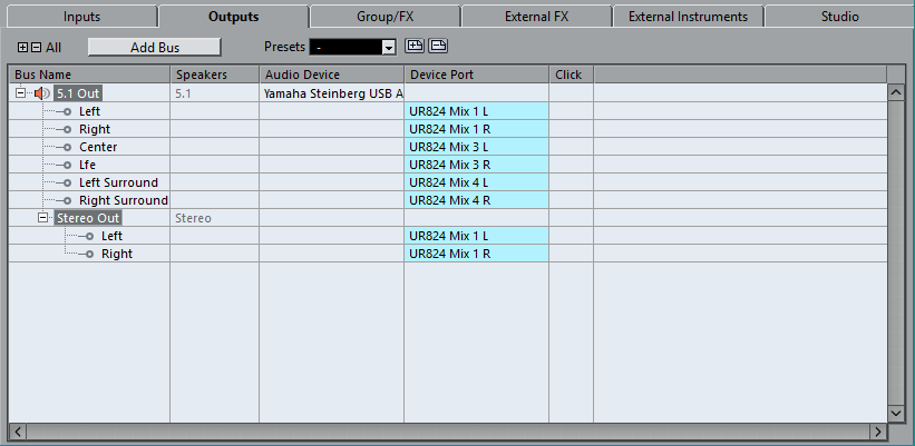 チャイルドバスを使用すると、トラックをサラウンドバス内の特定のチャンネルにルーティングできます。サラウンドバスの中にステレオバスを作成することで、ステレオトラックをステレオスピーカーペアに直接ルーティングできます。また、別のサラウンド形式内に、ペアレントバスよりもチャンネルの少ないチャイルドバスを追加することもできます。