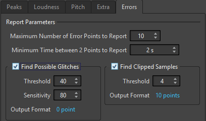 Schwellenwert legt einen Wert fest, ab dem eine Veränderung im Pegel als Glitch behandelt wird. Je höher dieser Wert, umso weniger Glitches werden gefunden.