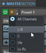 Allows you to save and recall Master Section presets. The Presets pop-up menu offers additional options to save and load default banks and effects.