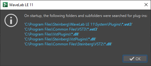 wird angezeigt, in welchen Ordnern WaveLab LE beim Start nach PlugIns gesucht hat.