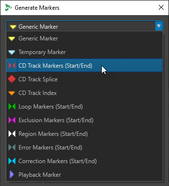 Pour ouvrir la boîte de dialogue Générer des Marqueurs, ouvrez la fenêtre Marqueurs et sélectionnez .