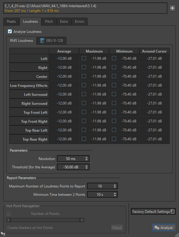 Die folgenden Optionen sind auf den Registerkarten RMS-Lautheit und EBU R-128 verfügbar: