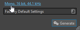 Klicken Sie auf die Audioeigenschaften, um eine Bittiefe und eine Samplerate auszuwählen.