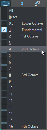 Hiermit können Sie Obertöne zur Spektrum-Auswahl hinzufügen, ohne die Form der Auswahl zu ändern. Standardmäßig werden keine Obertöne hinzugefügt.