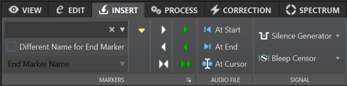 Beschreibungen der einzelnen Optionen finden Sie in den entsprechenden Abschnitten zur Einfügen-Registerkarte im Audio-Editor der Standalone-Version von WaveLab Pro.