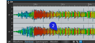 Cette fonction est également disponible dans les affichages Forme d’onde et Arc-en-ciel de la fenêtre Montage audio.