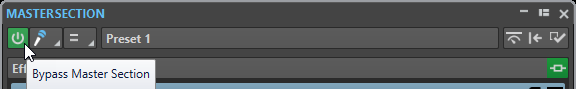 Pour contourner globalement la Section Maître, activez le bouton Contourner la Section Maître situé en haut à gauche de la Section Maître. Tous les autres panneaux de la Section Maître sont contournés. Cependant, le rendu en fichier prend en compte tous les plug-ins.