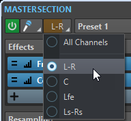 Permet de réarrange la Section Maître en fonction de la fréquence d’échantillonnage et de la configuration des canaux du fichier audio actif. Le bus interne de la Section Maître et tous les plug-ins actifs sont configurés en conséquence.